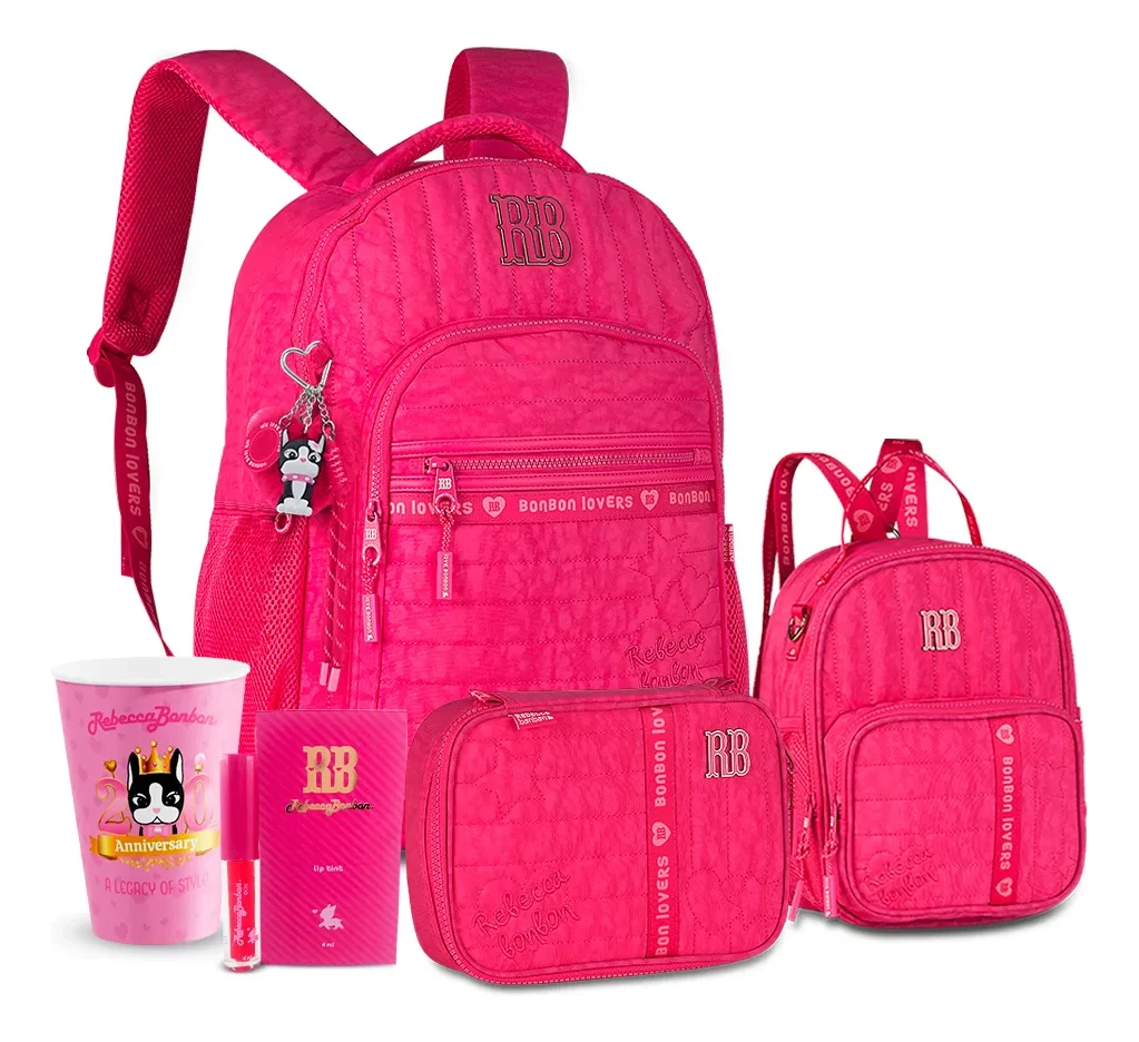 Descubra o Kit Mochila Estojo Lancheira Rebecca Bonbon, a escolha perfeita para quem busca combinar estilo, praticidade e organização. Ideal para o dia a dia escolar, este kit acompanha tudo o que você precisa para arrasar na escola. Adquira já o seu e experimente a qualidade e o charme da Rebecca Bonbon, a marca que é sinônimo de sucesso entre as fashionistas.