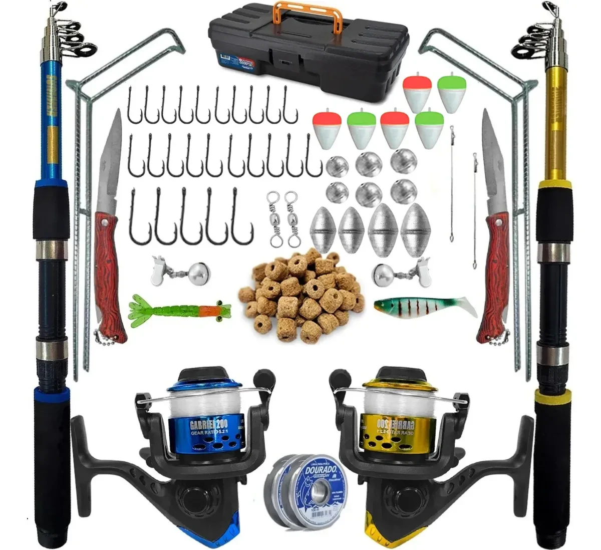 Kit Pesca Completo, Vara, Molinete, Maleta e acessórios, pronto para usar, ideal para uso em pesqueiros, lagos, rios, represas e outros.