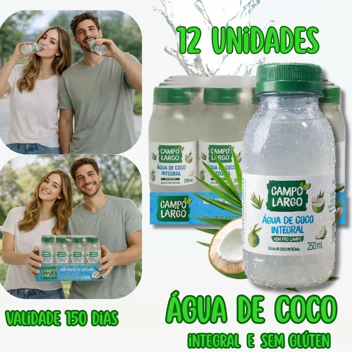 O Água de Coco Campo Largo Integral 250ml se destaca pelas seguintes características principais: (Marca: Campo Largo, Linha: Integral, Natural, Sem adição de açúcares, sem glúten, Sabor: Água de Coco Integral, Volume da unidade: 250 mL, Tipo de embalagem: Garrafa PET, Formato de venda: Unidade, É livre de glúten: Sim, É produto dietético: Não, É água gaseificada: Não, É baixo em sódio: Não, )
