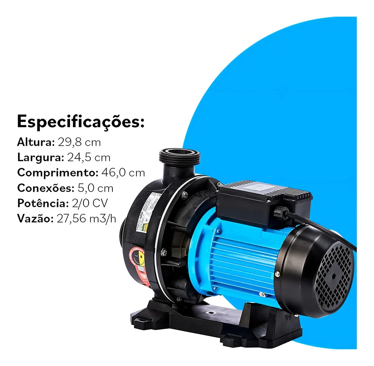 Transforme sua piscina ou spa com a Bomba 2,0 Cv Sodramar. Desfrute de hidromassagens relaxantes com um motor potente e fácil instalação. Aproveite a oferta e garanta o melhor preço para sua bomba!