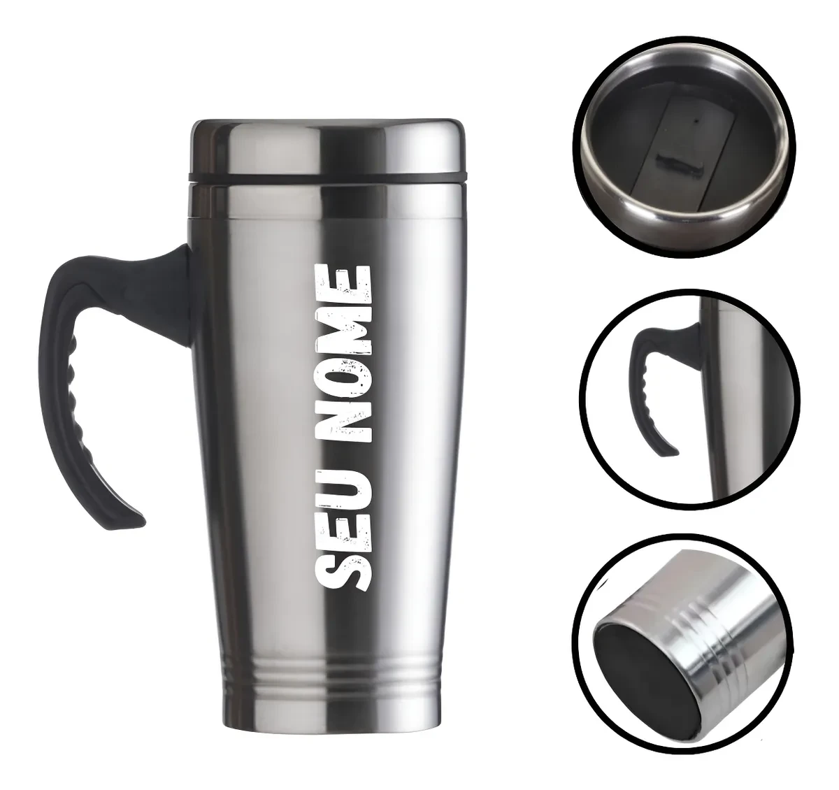 Caneca Personalizada 450ml Inox com Nome e Logo | Frete Grátis