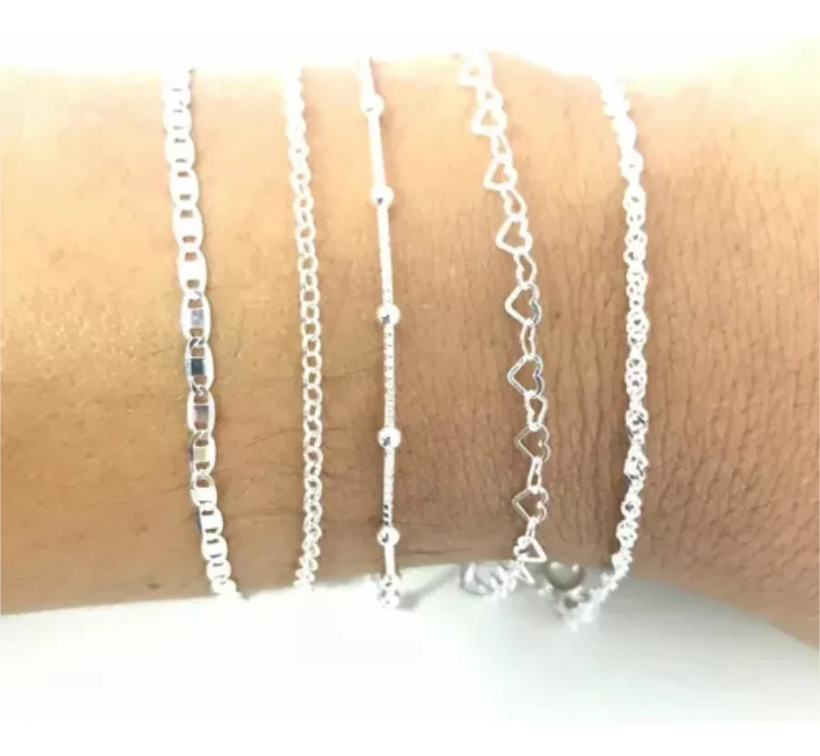 O Conjunto 5 Pulseiras de Prata 925 Feminina é a combinação perfeita de beleza e qualidade. Cada pulseira é cuidadosamente elaborada em prata 925, garantindo brilho e durabilidade. Este conjunto oferece uma variedade de estilos, permitindo que você personalize seu visual para qualquer ocasião. Não perca a oportunidade de adquirir este conjunto de pulseira de prata feminino, a melhor oferta está aqui!