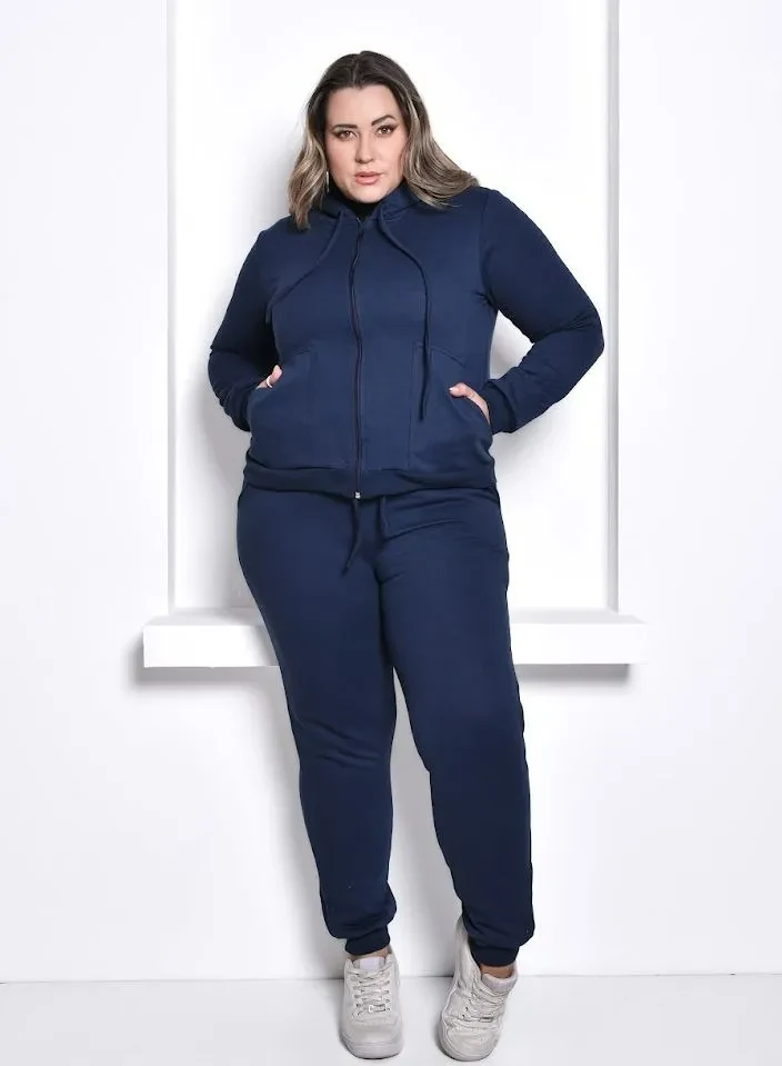 Especificação: Conjunto Moletom Feminino Plus Size Quentinho Original – Frete Grátis