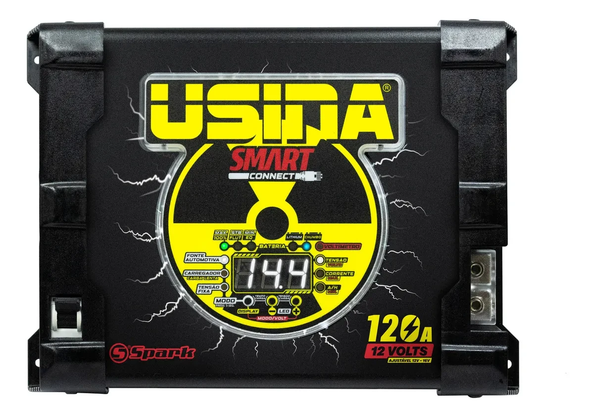 O Fonte Carregador Usina Connect 120A Bivolt se destaca pelas seguintes características principais: Potência de saída de 1.500W, ideal para carros e caminhonetes. Conta com controle térmico automático e opera bivolt. Fabricada no Brasil.