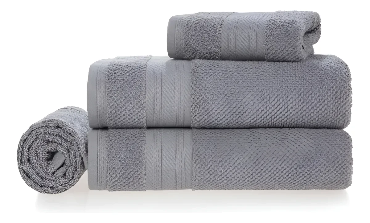 O Jogo de Banho Karsten Empire Cinza se destaca pelas seguintes características principais: Toalha, Cor: Cinza, Formato de venda: Kit, Unidades por kit: 4, Largura da toalha de banho: 70 cm, Comprimento da toalha de banho: 1,35 m, Uso recomendado: Banheiro, Composição: Algodão.