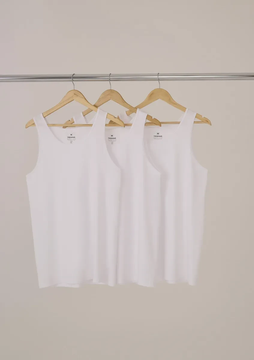 O Kit 3 Regatas Masculinas Hering Slim se destaca pelas seguintes características principais: Malha de algodão; Modelagem slim; Gola careca; Kit com 3 unidades.