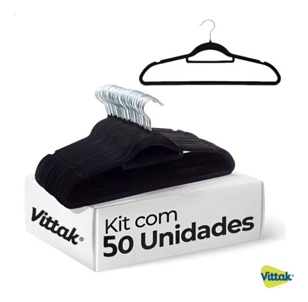 Kit 50 Cabides de Veludo Preto Antideslizante Slim Vittak | Frete Grátis e Oferta!