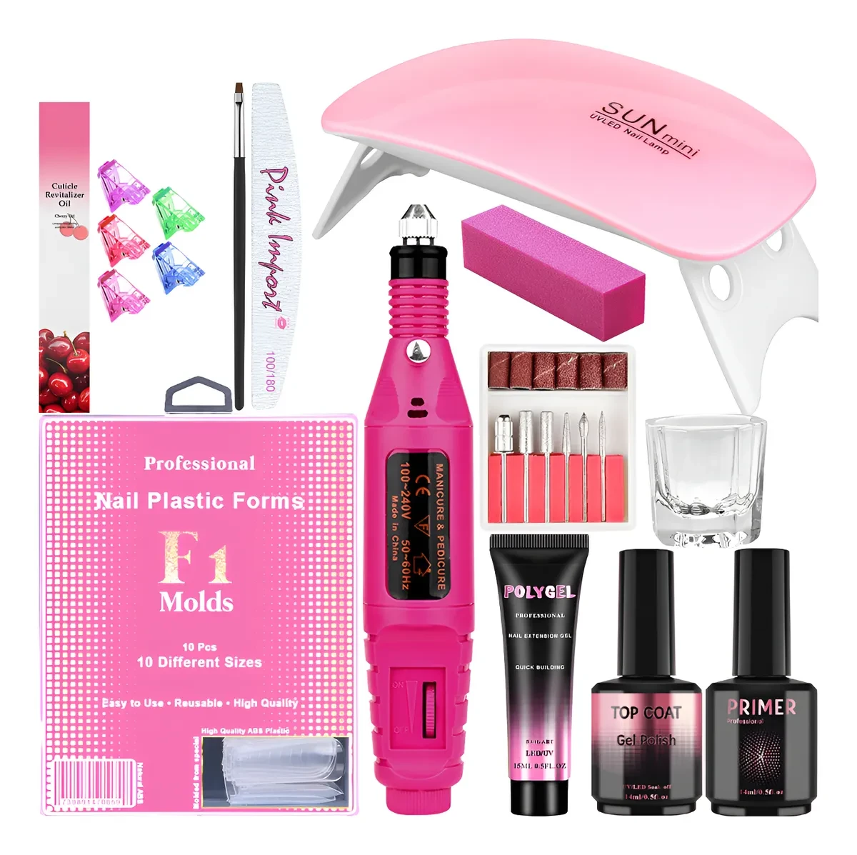 Kit Polygel Pink Import: Alongamento de Unhas Completo com Cabine e Lixadeira!
