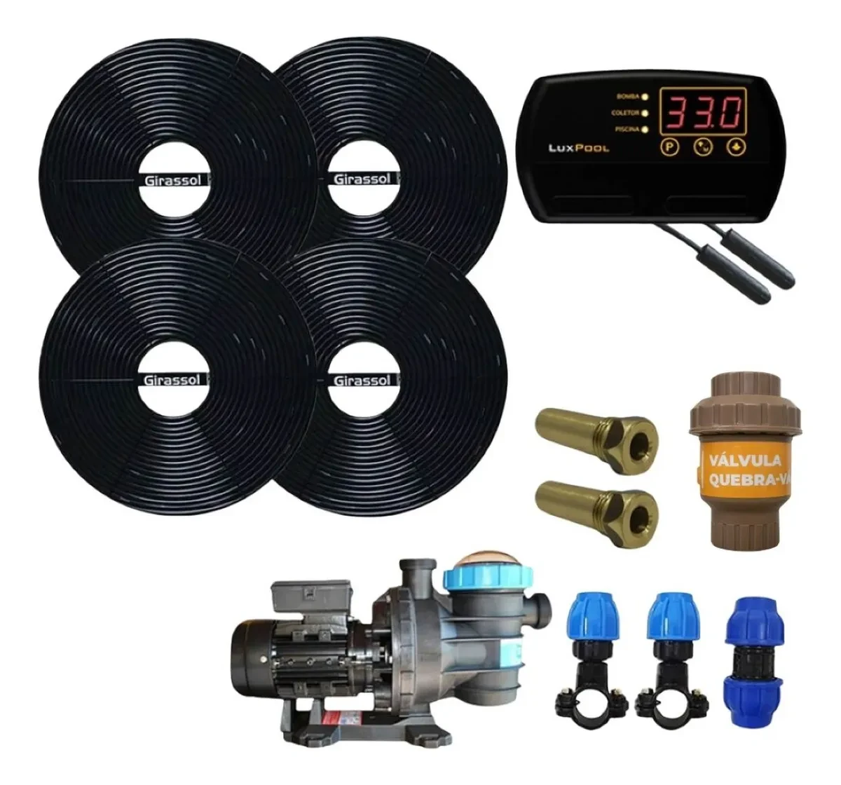 Especificações Técnicas do Kit Aquecedor Solar Piscina Girassol 16.000 L + Bomba