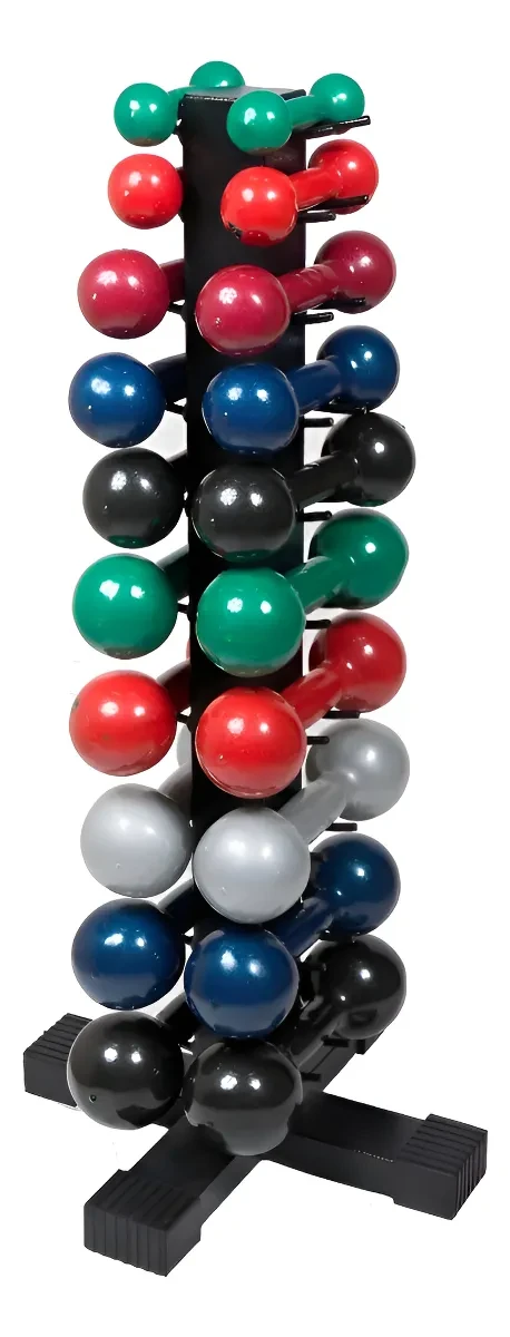 Especificação: Kit Halteres De 1 A 10kg Emborrachados 10 Pares + Suporte Variada