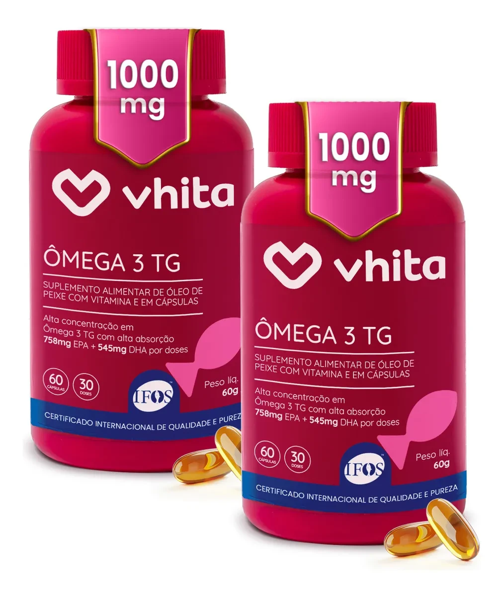 Especificação: Ômega 3 Vhita 1000mg TG: Desconto no Kit com 2 Potes + Frete Grátis!