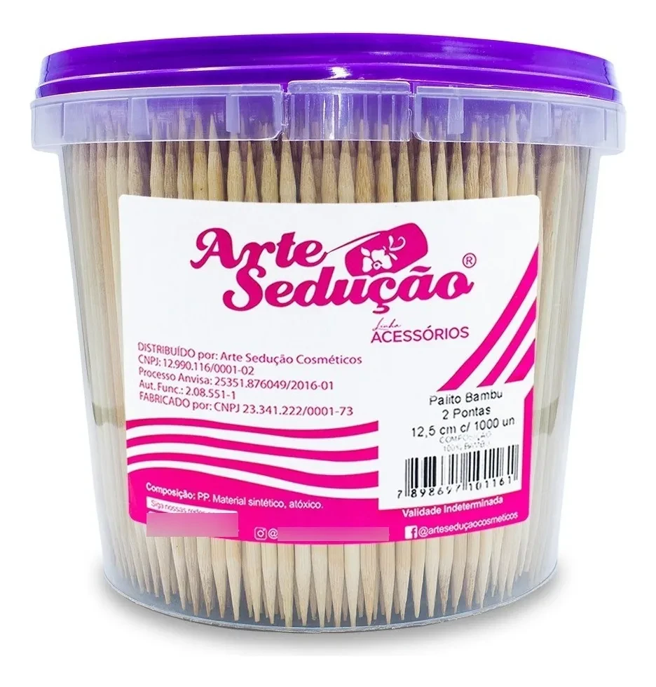 O Palito para Unhas Arte Sedução se destaca pelas seguintes características principais: Palitos de bambu com duas pontas, pote com 1000 unidades, ideal para manicure e pedicure, e gramatura 100.