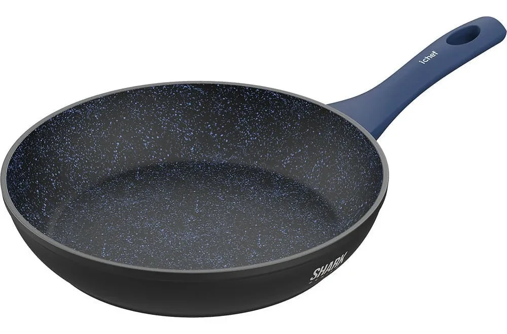 O Panela Antiaderente Ichef Shark Series Home 24cm se destaca pelas seguintes características principais: Frigideira, cor azul e preto, formato redondo, 24 cm de diâmetro, material em alumínio e superfície antiaderente.