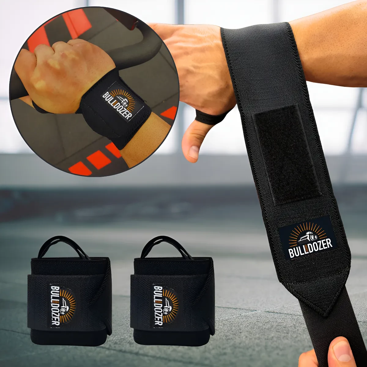 O Par Munhequeira Bulldozer Profissional se destaca pelas seguintes características principais: Faixa Elástica super resistente com costura dupla, Polegar loop gancho, Fecho com velcro de alta aderência,