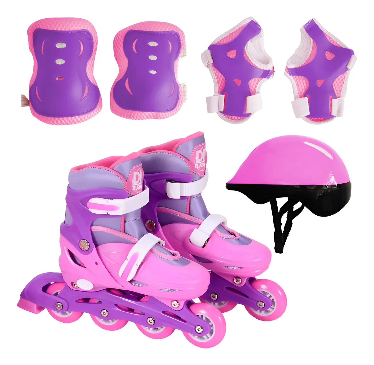 Especificação: Patins Inline Ajustável Rosa DM Toys | Frete Grátis + Kit Completo