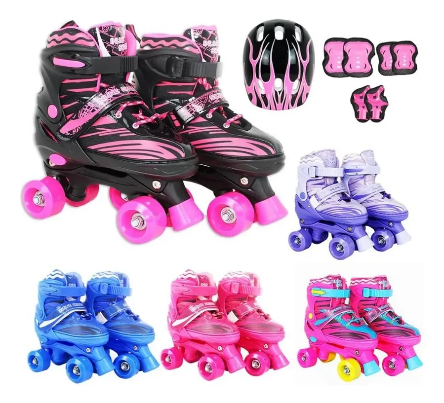- Kit Completo: Inclui capacete, joelheiras, cotoveleiras e caneleiras.
