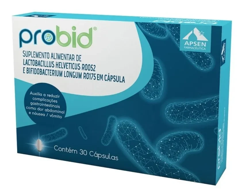Probid 30 Cápsulas da Apsen é um suplemento alimentar que alivia desconfortos gastrointestinais, como dor abdominal, náuseas e vômitos. Sua fórmula exclusiva, com Lactobacillus Helveticus e Bifidobacterium Longum, oferece suporte ao bem-estar digestivo. Compre o seu Probid e diga adeus ao desconforto!