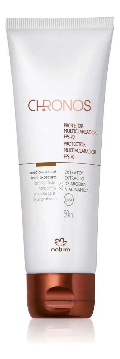 Especificação: Protetor Solar Clareador FPS 70 Chronos Natura Médio Escuro: Desconto e Frete Grátis na Oferta!